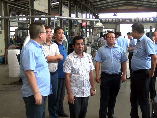 图为东帝汶国家电力总公司总经理Helio Renato Ximenes(左四)在总裁雷文康(左五)陪同下在云顶国际·(中国)唯一官方网站 车间参观。