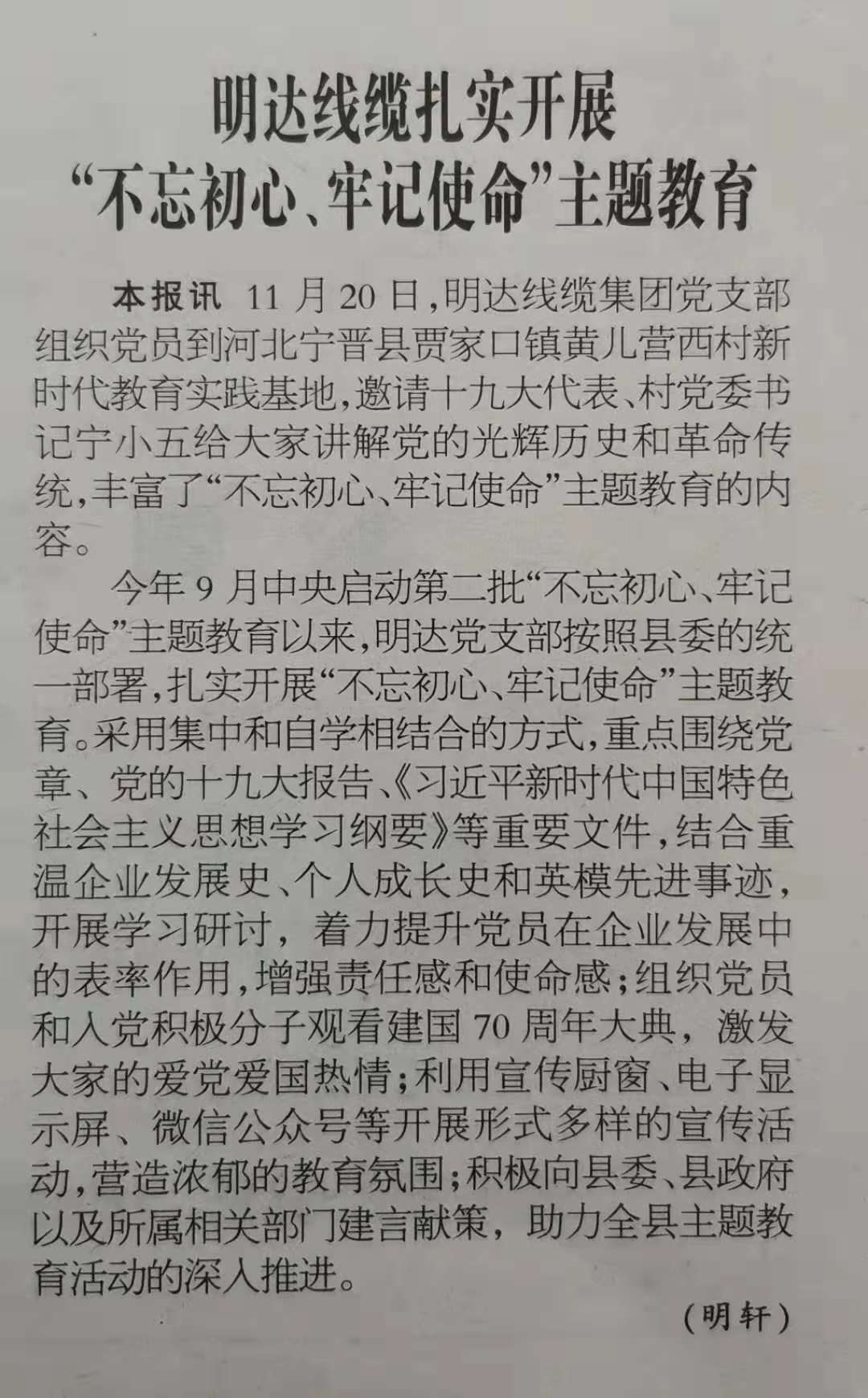 电线电缆报:云顶国际官网线缆扎实开展“不忘初心、牢记使命”主题教育