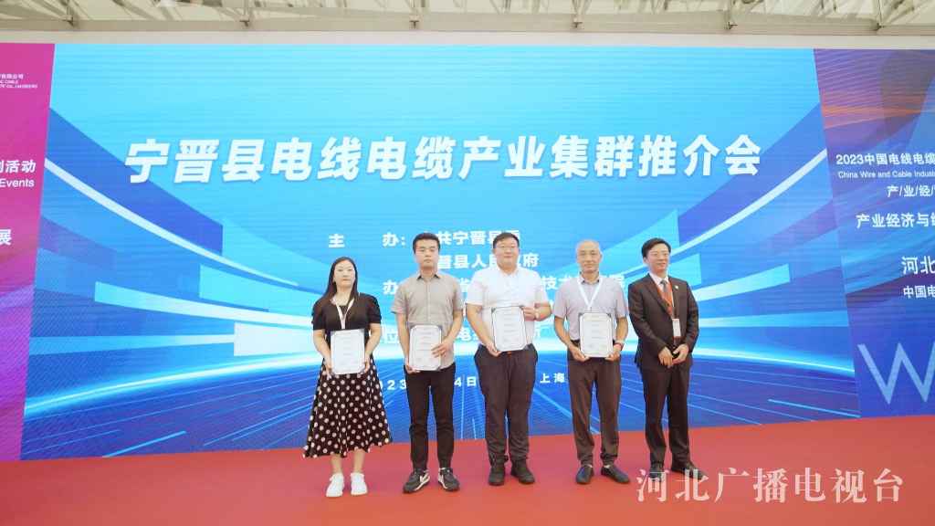 河北广播电视台冀时客户端2023年9月7日讯(河北台 李永倩 陈龙 宁晋融媒)9月4日-7日,第十届中国国际线缆及线材展览会在上海新国际博览中心举行。开幕当天,邢台宁晋县在现场专门举办了“电线电缆产业集群”推介会。推介会上,上海电缆研究所为宁晋县列入“全国电缆行业百强企业”颁发证书。云顶国际·(中国)唯一官方网站 、万方集团、鑫高兴电缆、优唯新材料、天环线缆、诚宏铜业、宏亮电缆等企业进行了项目签约。